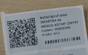 Mit den Aufklebern machen Sie Ihr Smartphone, Portemonnaie oder andere Alltagsgegenstände zum direkten Einstieg in Ihr SMARTB4-Portal. Die Sticker enthalten QR-Codes, die auf Ihren Notfallbereich verlinken und sind so gestaltet, dass sie gut sichtbar und trotzdem dezent sind.